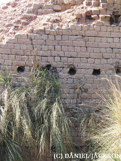 Es zeigt eine Stelle der Umfassungsmauer, die im "Palastfassadenstil" gebaut ist. Die Palastfassade zeichnet sich dadurch aus, dass immer ein Mauerstück etwas weiter nach vorn gebaut ist, während das nächste weniger dick ist. Dadurch entstehen diese Vorsprünge.