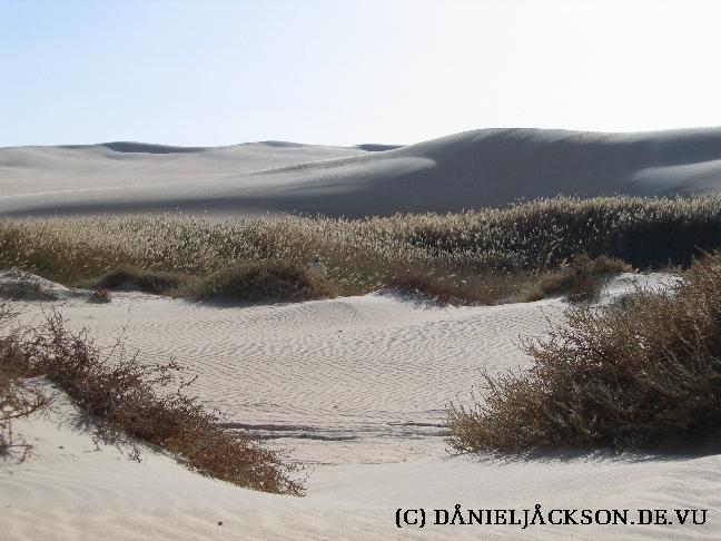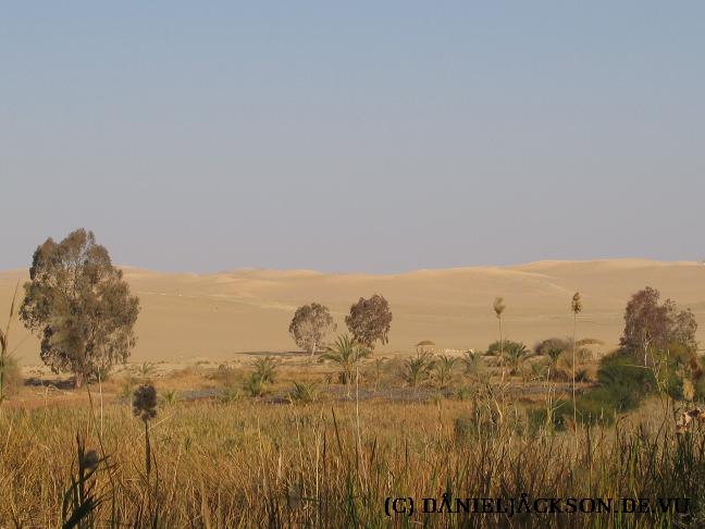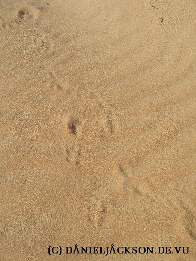 Achso, er sieht sich nur das Schilf genau an. Ansonsten hätte ich ja auch kein Foto gemacht... Spuren im Sand nahe der Oase SiwaHier am kleinen See kommen offensichtlich eine Menge Tiere zusammen, denn überall gibt es Tierspuren zu entdecken. Hier scheint eine Eidechse von einem katzenähnlichen Tier verfolgt worden zu sein.
