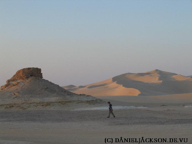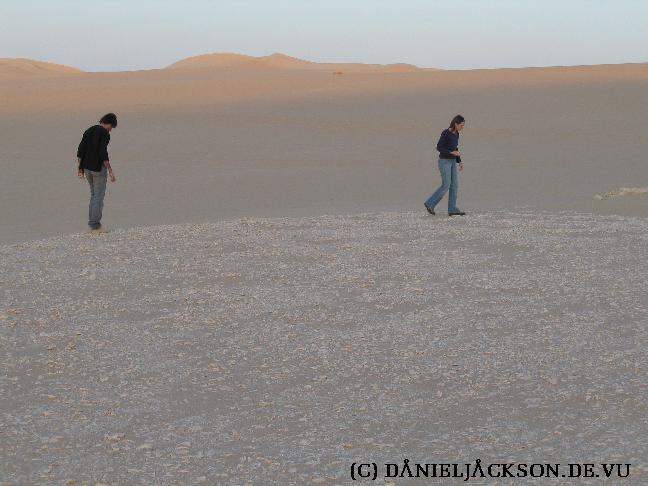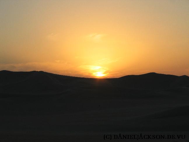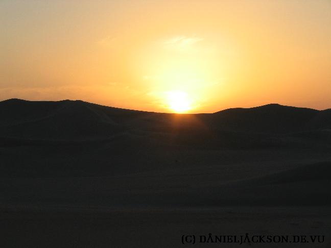 Sonnenuntergang in der Wüste bei Bir WahedBei uns ist die Sonne schon hinter den Dünen untergegangen, aber unser Fahrer gibt Vollgas. Er schafft es, noch rechtzeitig eine andere Düne zu erreichen, von der aus man noch einen herrlichen Sonnenuntergang genießen kann.
