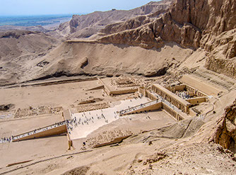 Sommer. Ist das warm! Im Felsenkessel von Deir el-Bahari brennt die Sonne. Kein Wind, nicht mal ein leichter Hauch. Schweiß, jeder Schritt ist eine Tortur. Es fällt schwer, die Reliefs im Tempel der Hatschepsut genau anzuschauen. Die Konzentration schwindet, das Denken fällt schwer. Auch den Ägyptern geht es so, sie sitzen ermattet im Schatten von Säulen und Mauern. „Jetzt Wasser und ein Ventilator, das wäre doch was“, melden sich die grauen Zellen, bevor sie ihre Arbeit einstellen. Statt dessen Staub und Sonne. Die Luft über dem Boden flimmert.